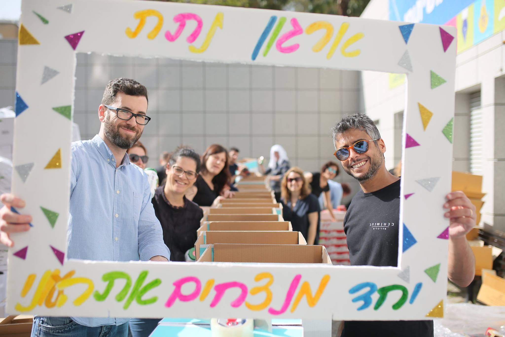 Den ganzen Tag über nahmen sich Unternehmen aus der Region frei, um unseren laufenden Kampf zur Verringerung von Armut und Ernährungsunsicherheit zu unterstützen. Zusammen packten sie 4.000 Passachpakete, die die Tische der bedürftigen Israelis erreichen werden.