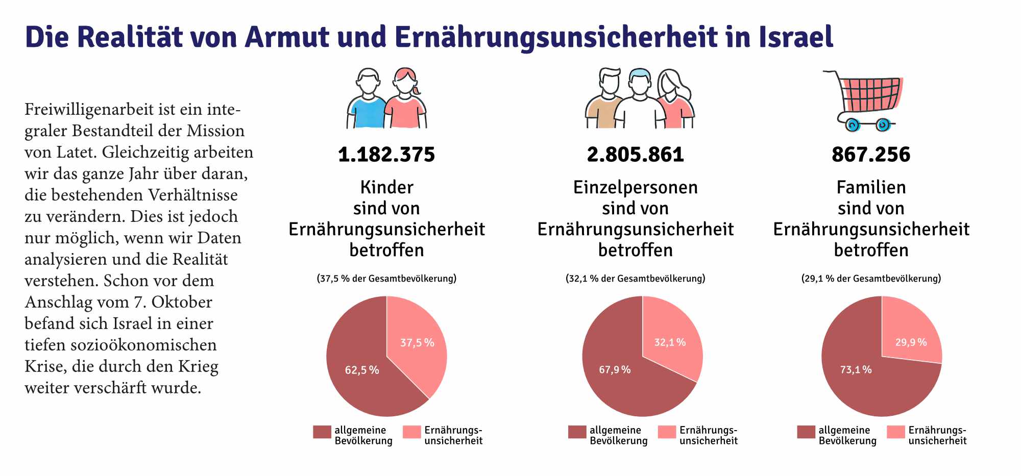 Da Latet nun im 30. Jahr seines Bestehens ist, gewinnt dieser Sozialbericht eine besondere Bedeutung. Er spiegelt nicht nur den Umfang unserer heutigen Arbeit wider, sondern auch den langen Weg, den wir seit 1996 zurückgelegt haben, als die Organisation ganz bescheiden in der Küche einer kleinen Wohnung in Tel Aviv gegründet wurde. Dreißig Jahre später ist unsere Mission dieselbe geblieben, doch die Herausforderungen, vor denen wir stehen, sind tiefgreifender und komplexer denn je.