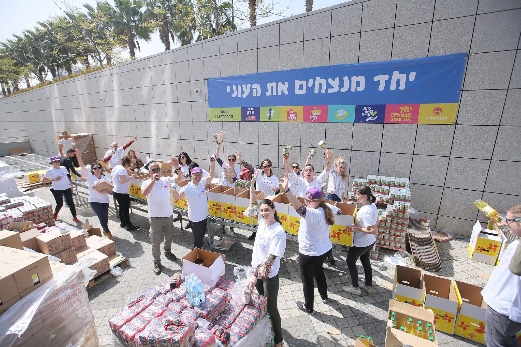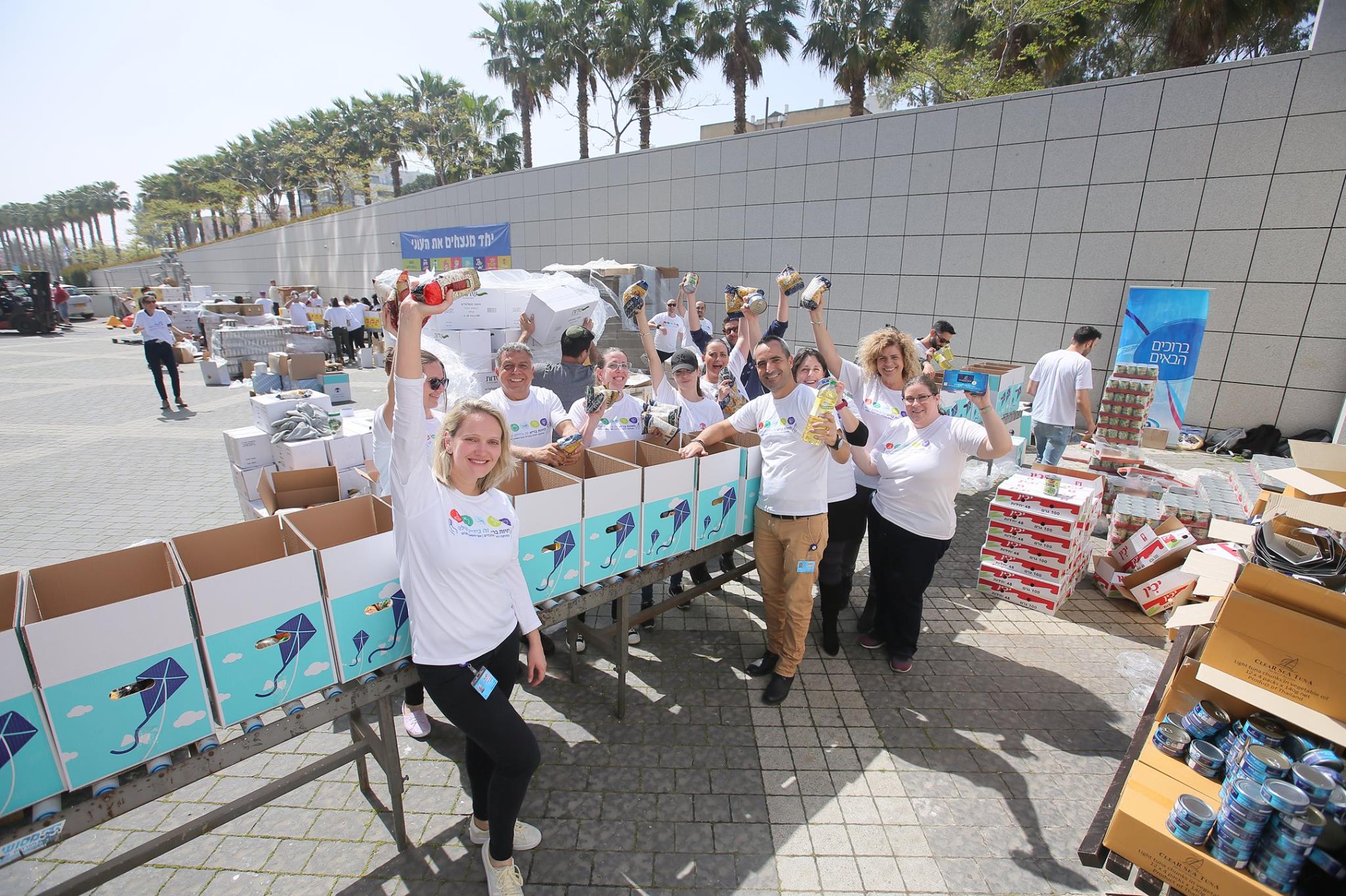 Den ganzen Tag über nahmen sich Unternehmen aus der Region frei, um unseren laufenden Kampf zur Verringerung von Armut und Ernährungsunsicherheit zu unterstützen. Zusammen packten sie 4.000 Passachpakete, die die Tische der bedürftigen Israelis erreichen werden.