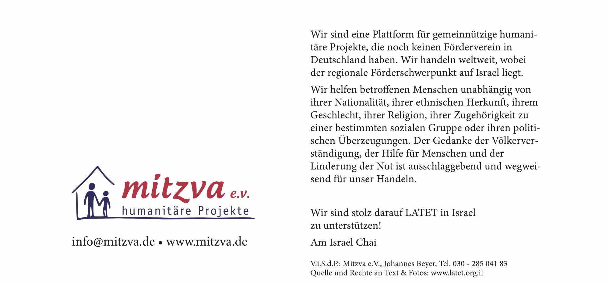 Dieser „stille Krieg“ gegen die Armut wird lang und anstrengend sein. Er findet in einer angespannten israelischen Gesellschaft statt, die von wachsenden Spaltungen und tiefer werdenden Konflikten geprägt ist. In diesem Kontext bleibt Latet einer der wenigen Orte des Konsenses, ein gemeinsamer Raum, der in Israel und in der Diaspora Energie mobilisiert, um die vor uns liegenden Herausforderungen zu meistern und eine einfache, aber essentielle Vision zu bewahren: ein Land, das auf gegenseitiger Verantwortung gründet.