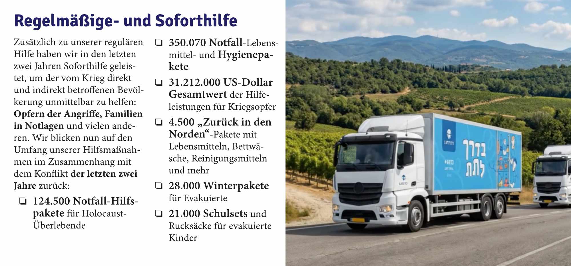 Lates Fähigkeit, landesweit zu helfen, ist das Ergebnis einer bemerkenswerten gemeinsamen Anstrengung. Sie ist den Hunderttausenden Israelis zu verdanken, die sich in diesem Jahr für eine Spende entschieden haben. Sie ist den Tausenden Spendern in den Vereinigten Staaten, Frankreich, der Schweiz, Belgien, Deutschland und weltweit zu verdanken, die ihre Solidarität mit Israel durch die Unterstützung unserer Arbeit zum Ausdruck gebracht haben. Sie ist den Tausenden Freiwilligen zu verdanken, die mehr als eine halbe Million Stunden ihrer Zeit für die Bedürftigsten aufgewendet haben. Und sie ist den 1.800 Mitgliedern unserer Jugendbewegung und drei nationalen Freiwilligendienstgruppen zu verdanken, die vor Ort Seite an Seite gearbeitet haben, um nach zwei Jahren Krieg das soziale Gefüge Israels wiederaufzubauen.